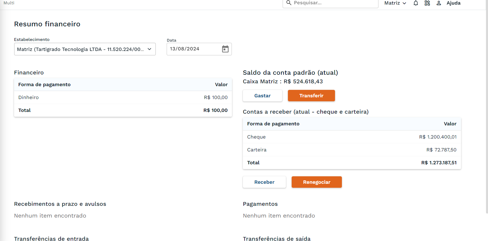 Pronto! Agora você já sabe consultar o resumo financeiro.